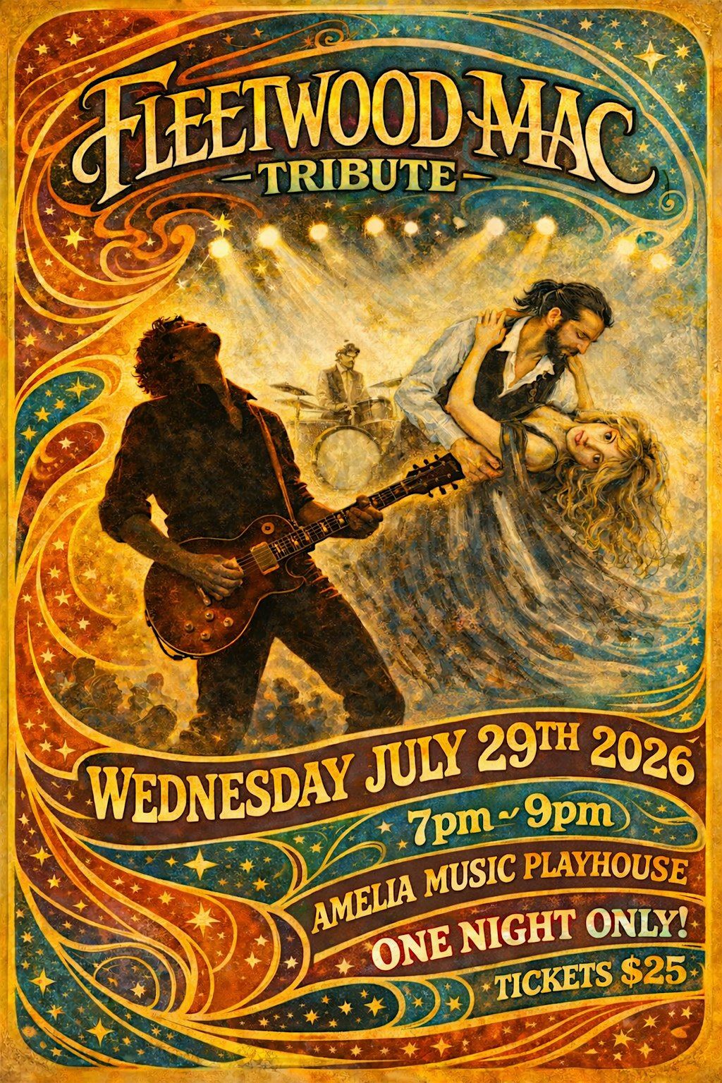 Join us at AMP (Amelia Music Playhouse) for an unforgettable evening celebrating the timeless music of Fleetwood Mac! This special tribute concert brings the band’s legendary songs to life with all the classic hits you know and love.