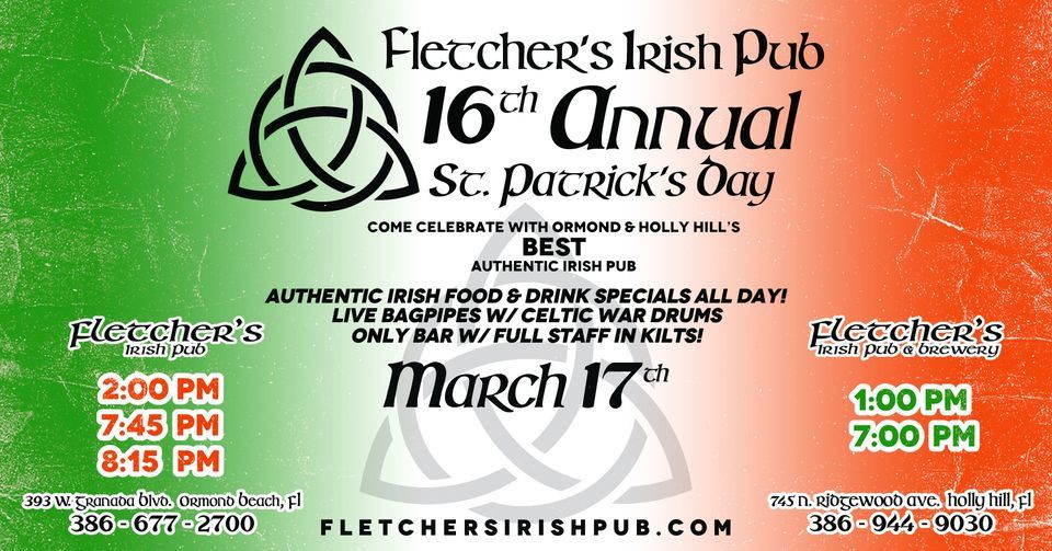 Bagpipers @ 2:00, 7:45 & 8:15 @ Fletcher's Irish Pub (Ormond Beach)