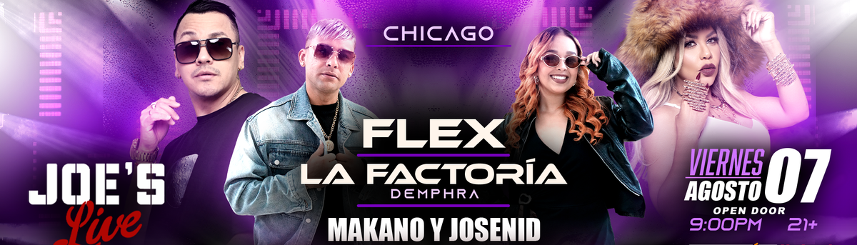 Don't miss FLEX, LA FACTORIA, MAKANO Y JOSENID EN CHICAGO happening at Joe's Live, Rosemont, IL, United States on 2026-08-07T21:00:00-06:00. A great evening with good music and a laid-back atmosphere awaits you. Invite your friends for a night out! **Event Details:** * **Location:** Joe's Live, Rosemont, IL, United States Reserve your place now for an unparalleled exciting experience. #FLEX,LAFACTORIA,MAKANOYJOSENIDENCHICAGO #event #exciting #RosemontEvents #ILEvents