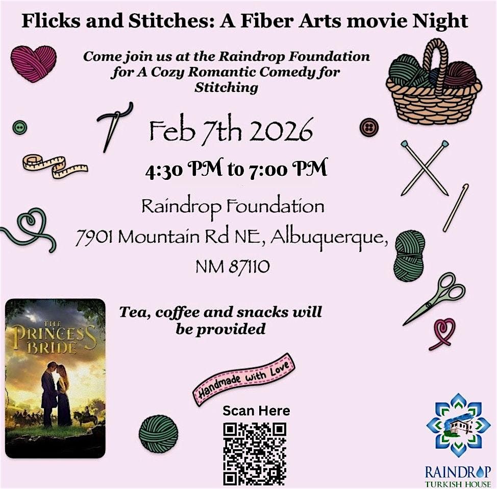Join us in person for a cozy evening of fiber arts fun and a great movie!