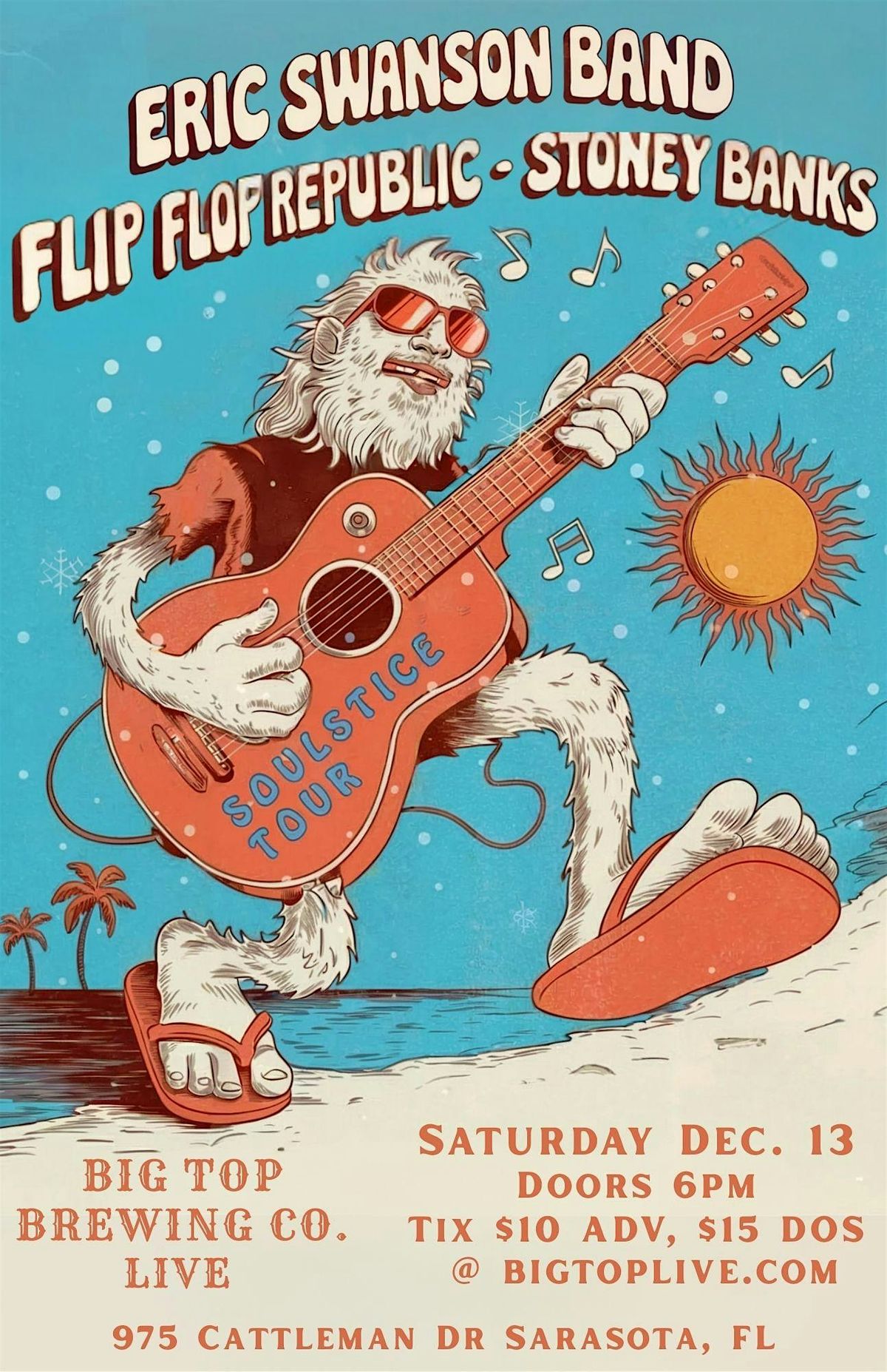 Step into the sun-soaked world of Flip Flop Republic, the rock and reggae troubadours from the vibrant music city of Tallahassee, FL.The heart of Flip Flop Republic beats with the diverse roots of its members, spanning from the soulful sounds of Mississippi to the lively beats of Miami and the sun-soaked melodies of St. Maarten. Each note and rhythm in their music carries the essence of these places, creating a unique sonic blend. Their debut album set the scene with beachy and reggae tunes that resonated in the Trop Rock genre, making waves on the charts. As they evolved, the band’s latest album, “Physical Science,” erupted onto the scene claiming the #1 spot on the iTunes Reggae chart and securing the #2 position on Amazon Reggae Best Sellers. The album’s power transcended borders, maintaining a strong presence in international/world music, consistently ranking in the top 25 online platforms. Flip Flop Republic hosts their own festival in Cedar Key, FL that has sold out the past three years in a row bringing a major economic impact to the city and continues to grow their fanbase and music community! Flip Flop Republic are major ambassadors for all things natural and wild Florida!