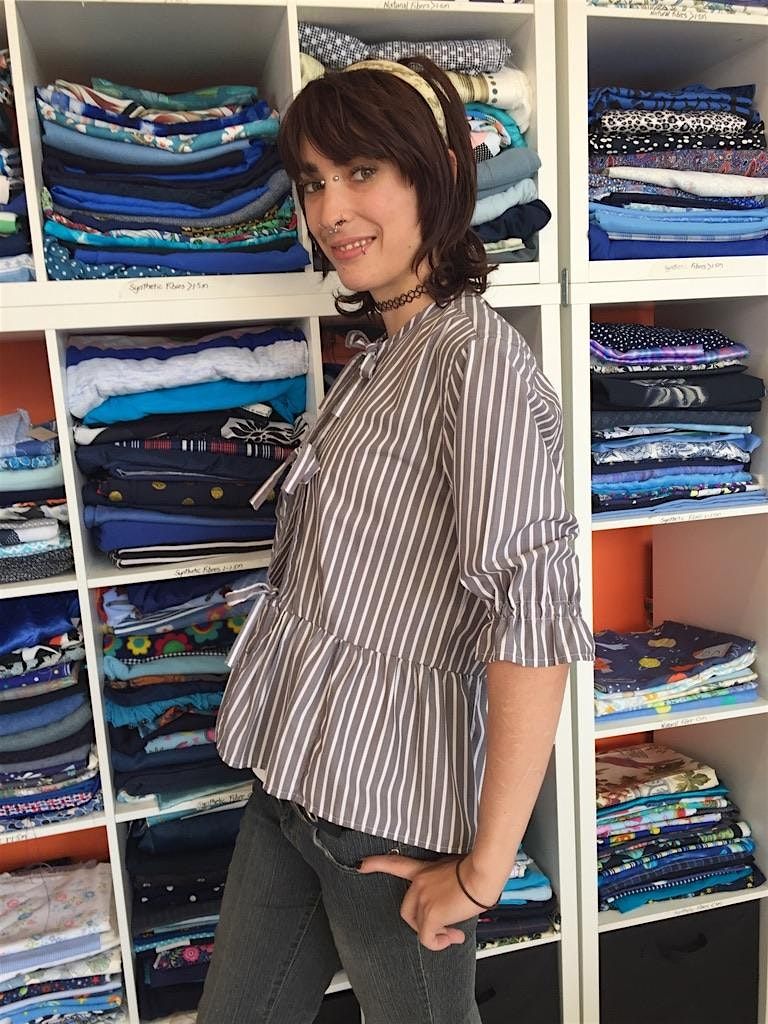 Remaking designer/maker Lisa Haas will guide you through the practical and technical side of transforming a thrifted business shirt into a new cute peplum top.