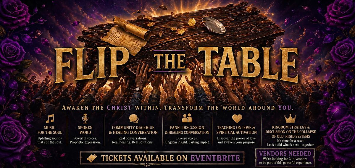 Flip the Table is a sacred and intentional space designed to awaken the mind of Christ within individuals and communities. We are stepping beyond traditional religious structures and into a deeper, living expression of Kingdom life—one that brings healing, unity, love, and purpose into our everyday environments.