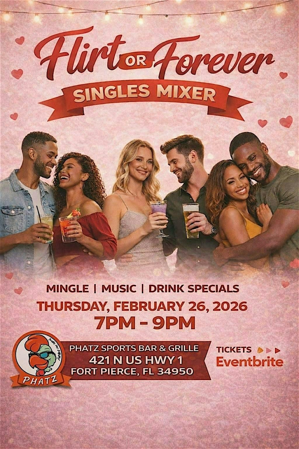 Ready to spark connections in a fun, relaxed setting? Join us in person for the Flirt or Forever Speed Dating & Singles Mixer! Meet new people, share laughs, and maybe find that special someone. Whether you're looking for friendship or something more, this event is the perfect chance to mingle and make meaningful connections. Don’t miss out on an awesome night of flirtatious fun and great vibes!