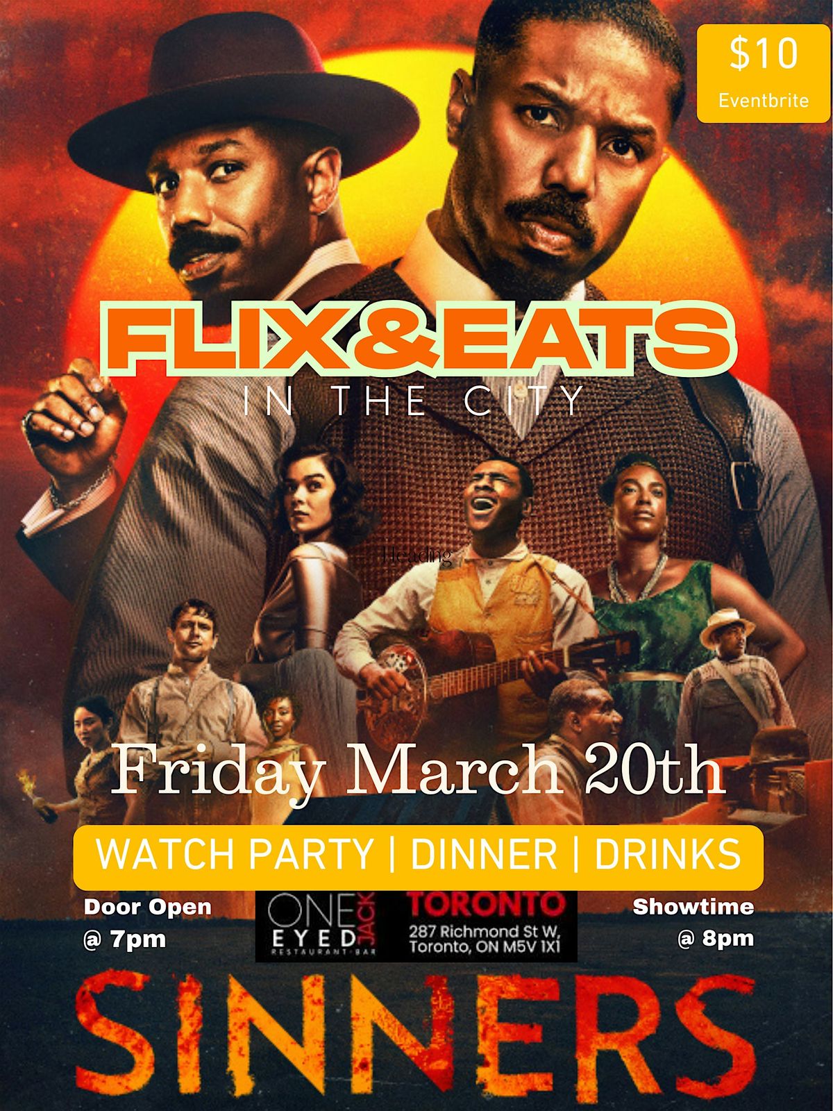 Dinner Menu And Drinks Available $10 ADMISSION BEFORE Mar 20th @ 6PM $15 AFTER For Info, Tickets, Table RSVP Text, Call or Whatsapp 416.704.5487 Tickets Available At Eventbrite https://FlixandEatsMar2026.eventbrite.ca