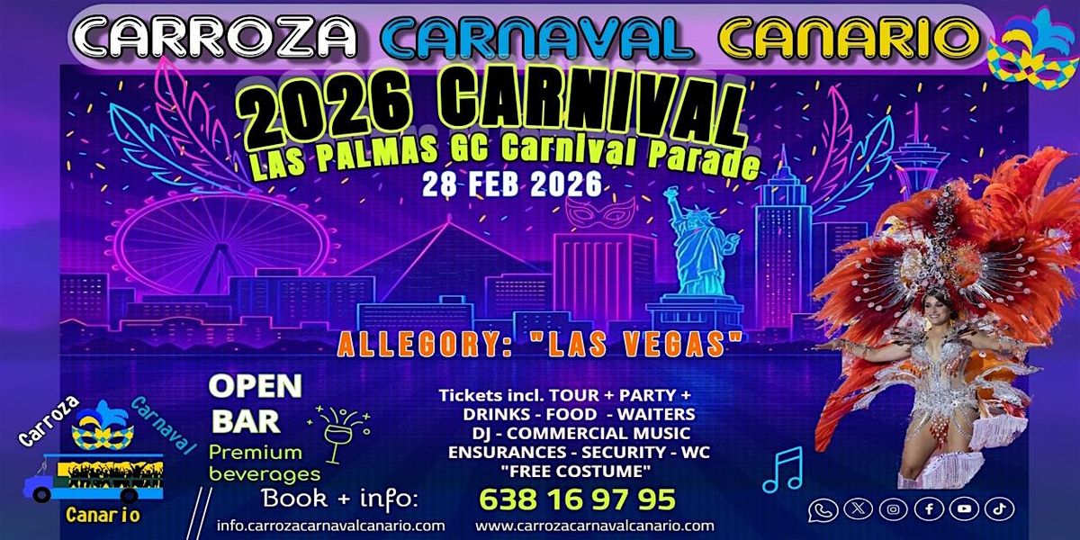 Get your tickets for the 2026 Las Palmas de Gran Canaria Carnival Float Parade. Experience one of Europe’s most vibrant carnivals!About this Event
