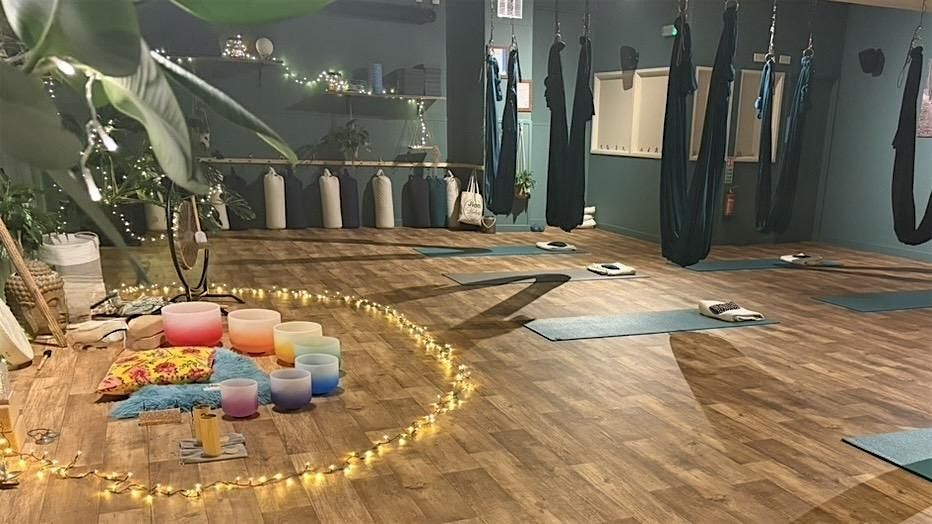Floating Sound Bath in Ripon with silk hammocks and mat spaces. A deeply restorative experience to rest, reset and reconnect.