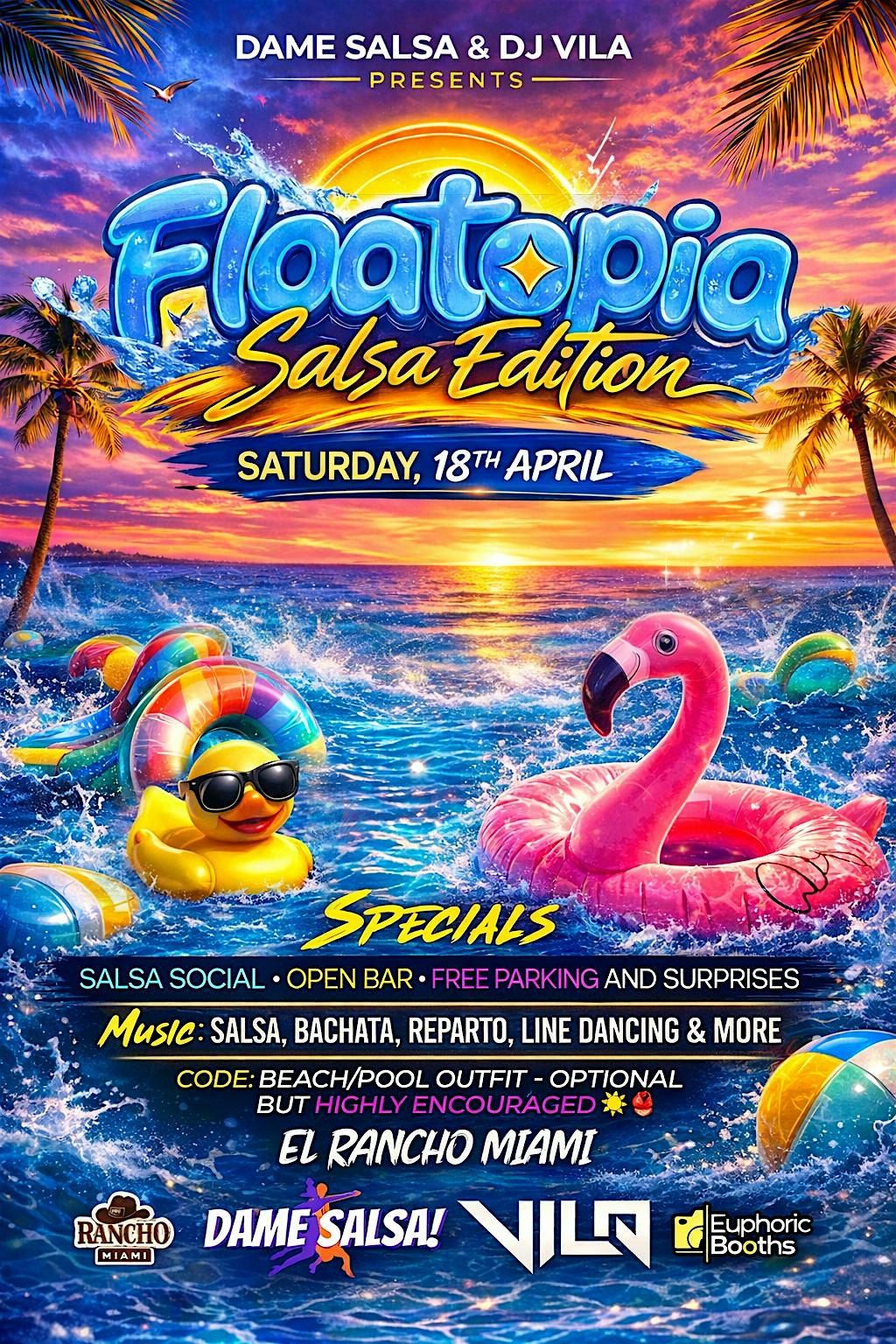 Beach or pool outfit is optional but highly encouraged to match the Floatopia theme. Bring your best tropical vibes and get ready for a night you will not forget.πππ©³