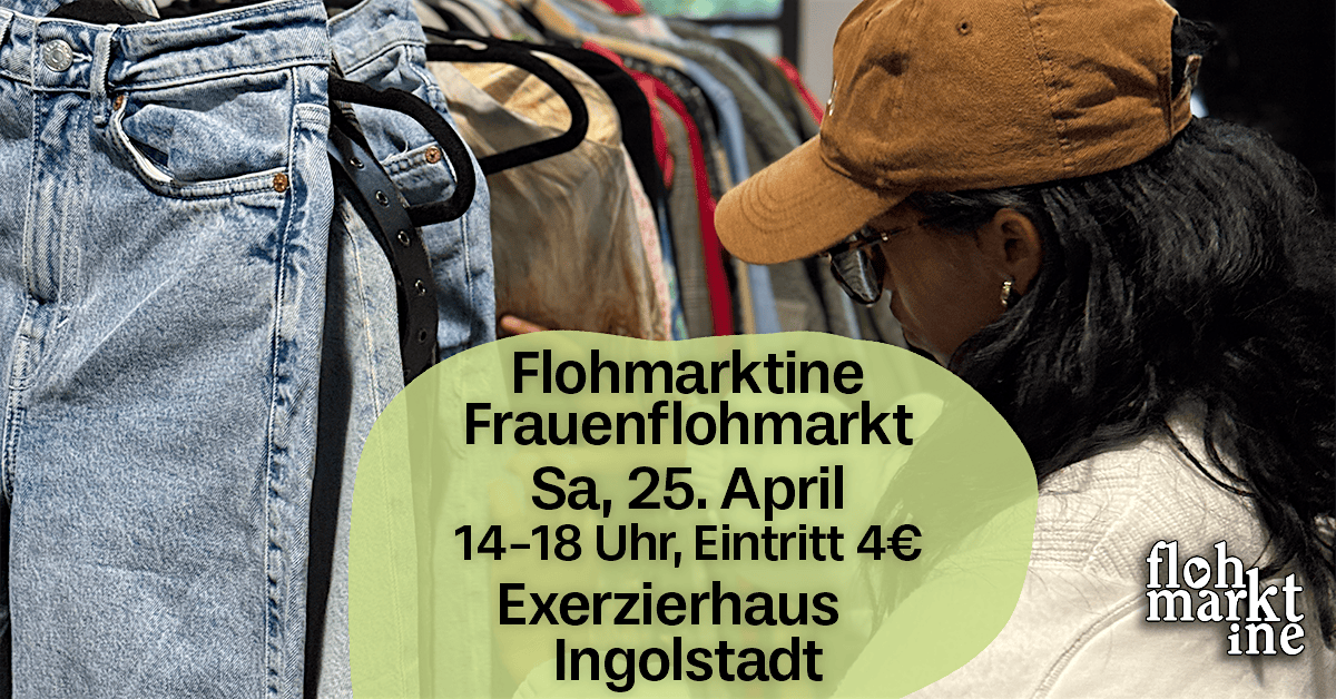 Jetzt anmelden! Samstag, den 25. April in Ingolstadt!🫶✨ Flohmarktine Frauenflohmarkt, das nachhaltige Shoppingevent im Exerzierhaus Ingolstadt!🛍️🌿 Du liebst Kleidung, Vintage & Accessoires? Bei uns gibt es alles, was dein Frauenherz begehrt!🫶