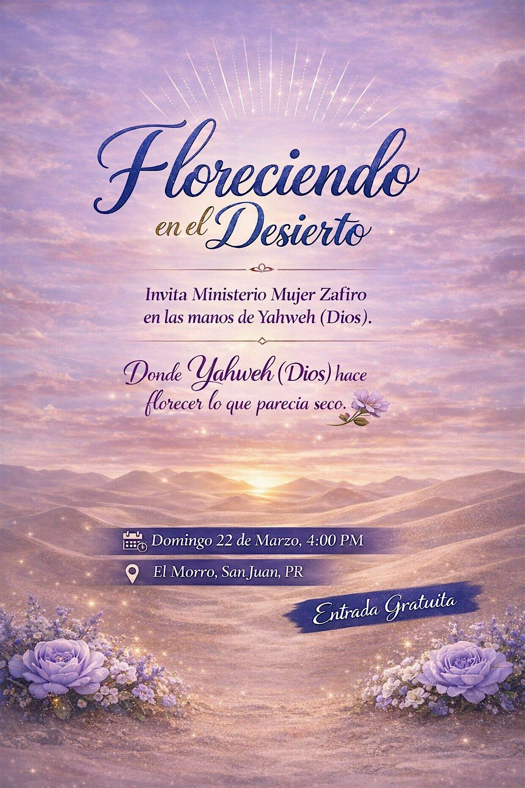 Floreciendo en el Desierto es un encuentro diseñado para mujeres que han atravesado temporadas secas, procesos de silencio, desgaste o dolor, y que están siendo llamadas a florecer nuevamente.