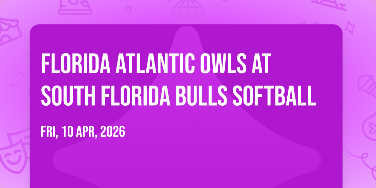 ๐ Location: 28.0587, -82.4139๐ Journey into wonder at Florida Atlantic Owls at South Florida Bulls Softball, where extraordinary experiences await around every corner! ๐๏ธ Set against the backdrop of USF Softball Stadium in dynamic Tampa, FL, this event promises to exceed all expectations. ๐ Join us on April 12th, 2026 at 05:05 PM for a celebration that combines innovation, entertainment, and community spirit in perfect harmony. โจ There will be an atmosphere where memories are made and stories come alive, ensuring every guest experiences something truly remarkable. ๐ This is more than just an event; it's a journey into the extraordinary!