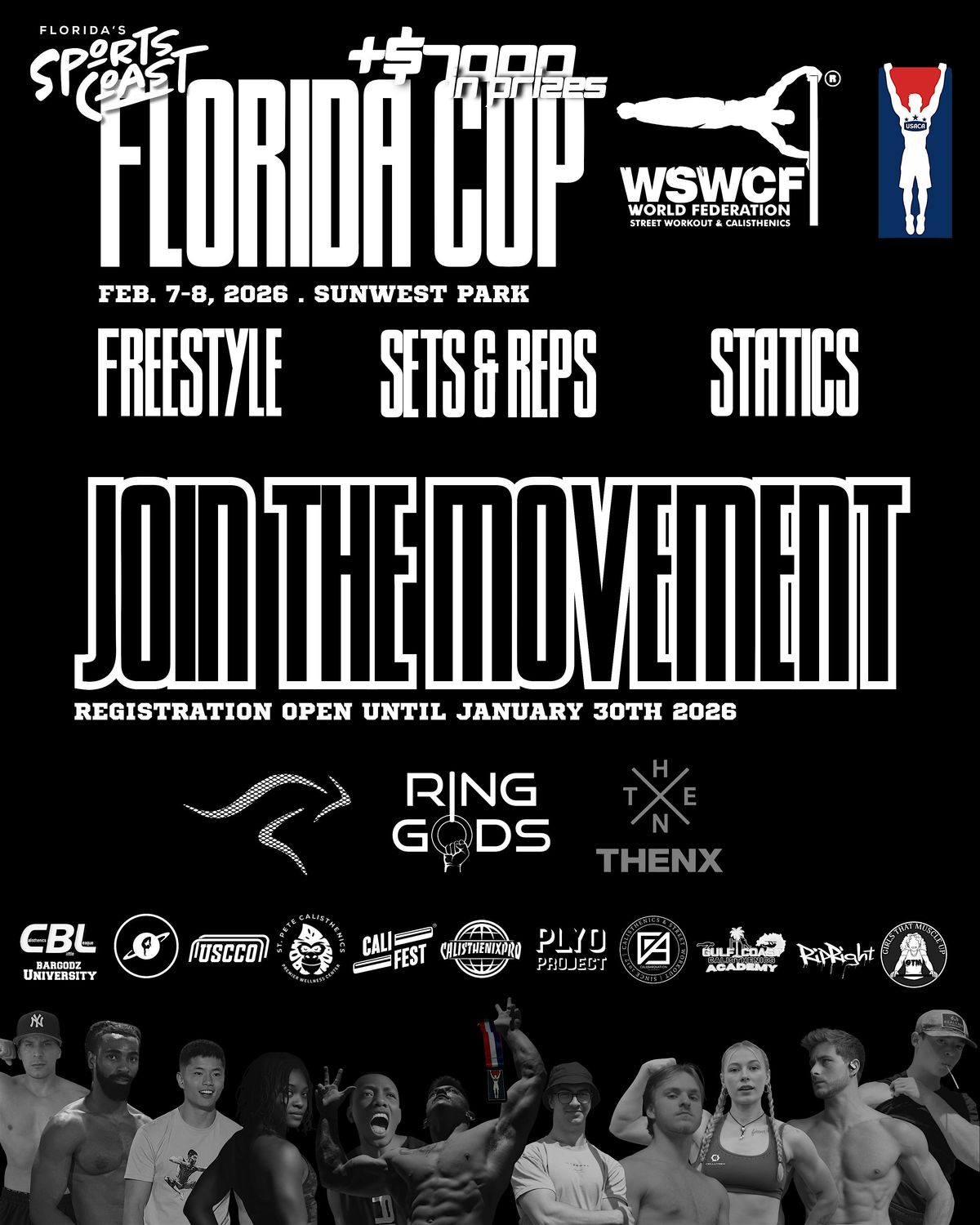 This February, Sun West Park transforms into the ultimate calisthenics arena, where athletes from across the world come to battle for cash and prizes under the Florida sun.