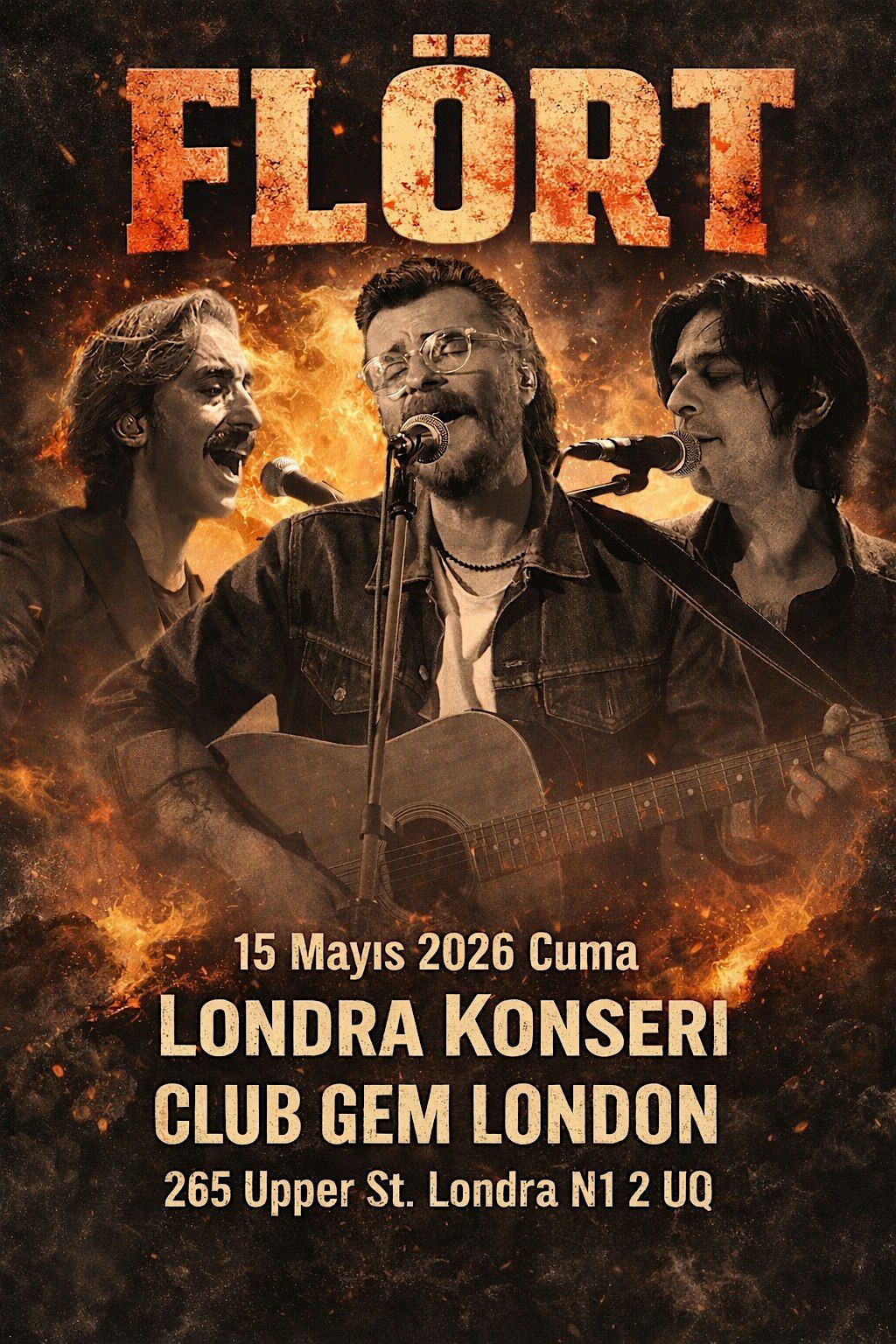 Flort Londra konserini kacirmayin. Konser oncesi restaurant bolumunde oturabilir, ucretli yemek ve iceceklerden siparis verebilirsiniz. Konser sonrasi after party'e ucretsiz kalabilirsiniz.