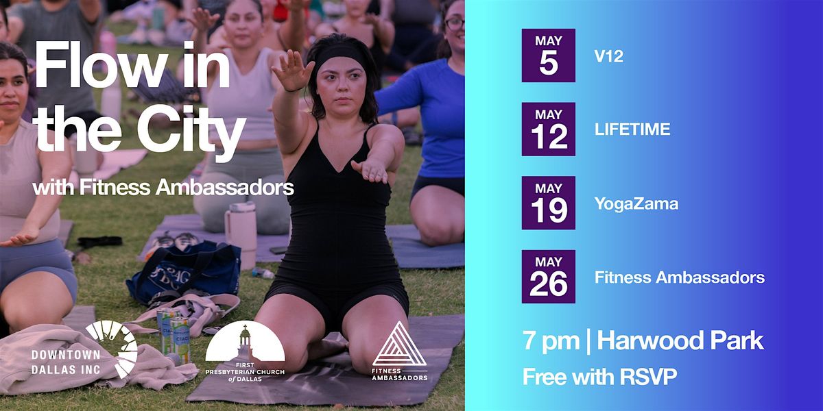 Join us at Harwood Park every Tuesday in May for Flow in The City, a free outdoor yoga series designed to help you slow down, reset, and reconnect in the heart of Downtown Dallas.