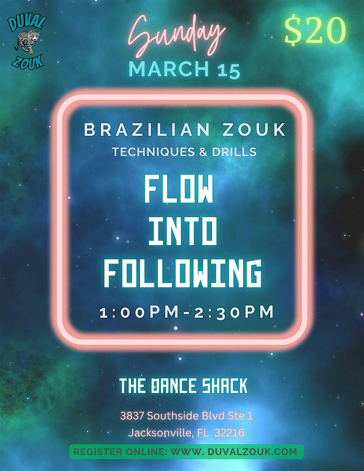 Flow Into Following Brazilian Zouk technique class for follows. Mar 15, 1–2:30 PM. Improve connection, balance & flow. Hosted by Duval Zouk