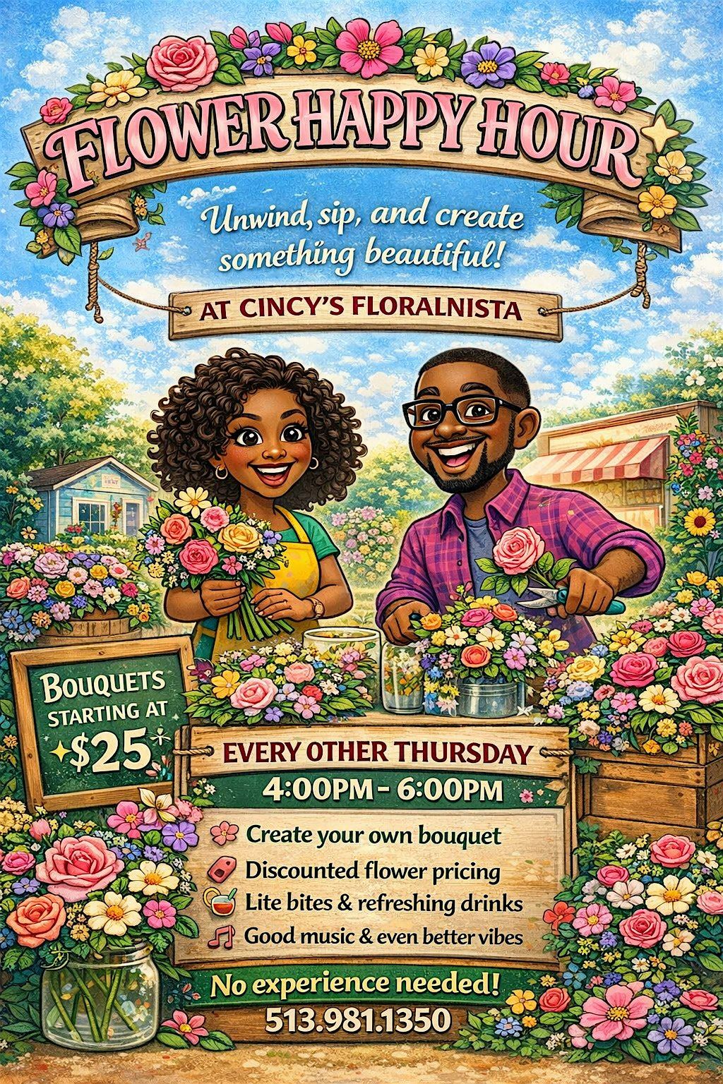 Unwind, create, and save at our signature Flower Happy Hour experience!
