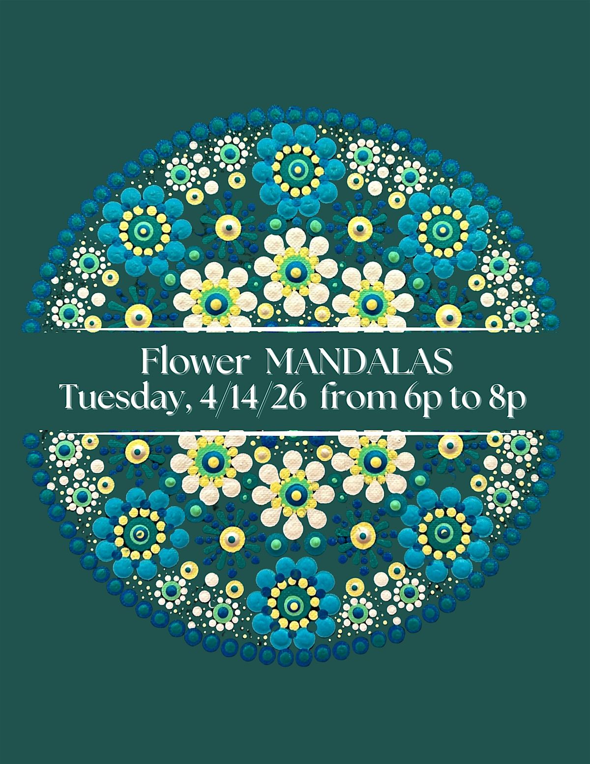 Join us for a Flower Mandalas Dot Painting & Wellness Class, where creativity blossoms and mindfulness takes root. In this guided session, you’ll paint a beautiful mandala-inspired floral design, a symbol of growth, renewal, and the beauty of life’s unfolding journey.