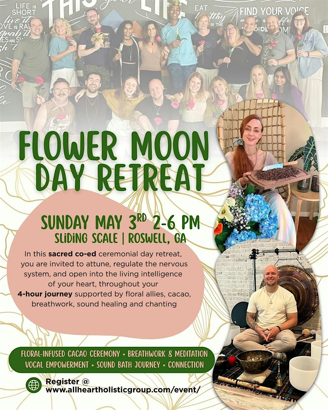 πΈπ 5/3 Flower Moon Day Retreat with Floral Cacao Ceremony, Breathwork & Chant