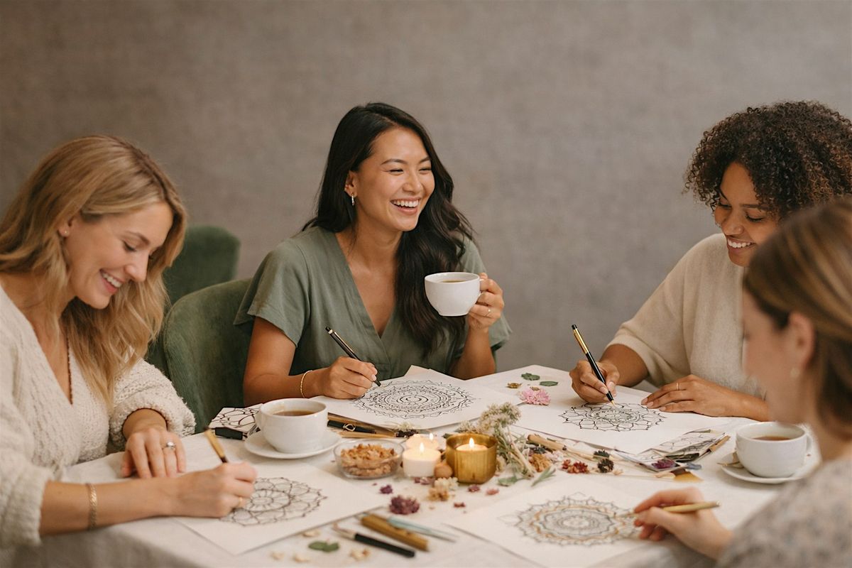 Guests will be invited to create their own mandala as a gentle expression of reflection, balance and inner calm. Often seen as symbolic of wholeness, mandalas are created in soft circular forms that draw the eye inward and encourage a slower, more mindful state. In this setting, the process is less about perfection and more about presence — a quiet moment to explore intention, beauty and personal meaning through shape, pattern and flow.