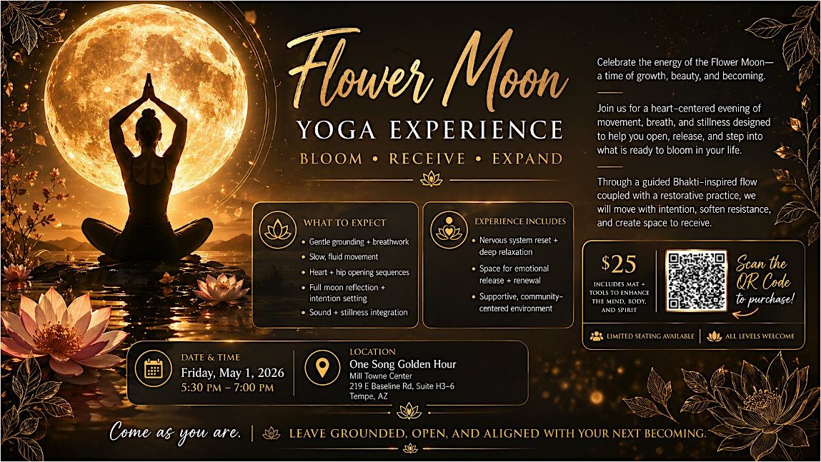 Join us for a heart-centered evening of movement, breath, and stillness designed to support you in opening, releasing, and stepping into what is ready to bloom in your life.