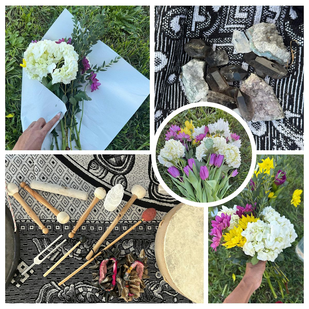 After our floral ritual, we will settle in for a Reiki infused chakra sound bath under the open sky. You will relax on your blanket while listening through Bluetooth headphones as the healing tones of my crystal sound bowls tuned to 432 Hz guide you into a deeply calming and restorative experience. Each bowl corresponds to a chakra in the body, helping support energetic balance, relaxation, and inner alignment.
