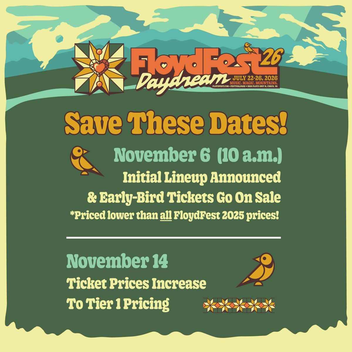 🎉 Prepare to be amazed at FloydFest - 4 Day Pass, the most anticipated gathering of the season! 🌟 Set against the stunning backdrop of Floydfest Grounds in vibrant Check, VA, this event promises to redefine your expectations. 📅 Mark your calendars for July 22nd, 2026 at 07:00 PM and get ready to immerse yourself in an atmosphere of wonder and excitement. ✨ From the moment you arrive, you'll be transported into a world where memories are made and stories come alive. They have crafted an experience that perfectly harmonizes entertainment, innovation, and community spirit. 🌈 Join us as we create moments that will be discussed for years!http://maps.seatics.com/GA-Kids-GA-Adults_2025-09-23_2025-09-23_1637_01012026_091946_SVGC_tn.png