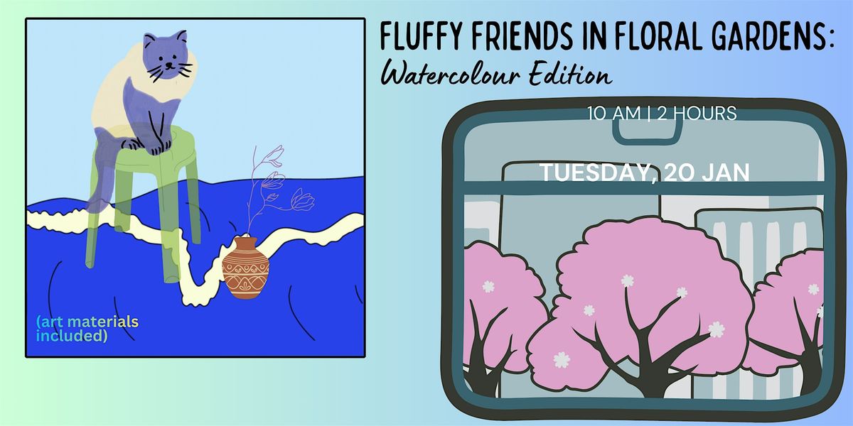 Join us in person for a fun and relaxing watercolour session! Capture the charm of fluffy pals surrounded by beautiful floral gardens.