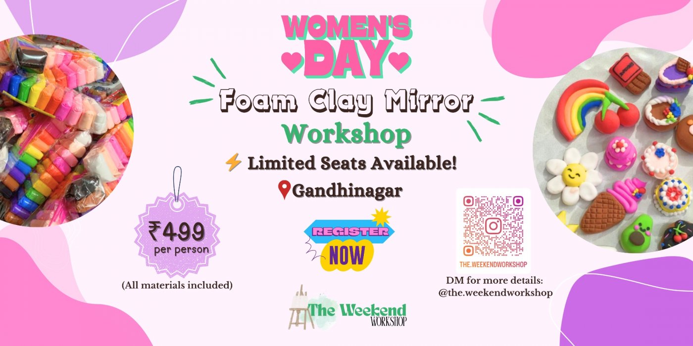 Join our Foam Clay Mirror Making Workshop at Swagat Holiday Mall and explore one of the most trending DIY art experiences in Gandhinagar! Guided by professional artists, this hands-on creative workshop is perfect for kids, teens, and adults looking for a fun art activity near you.