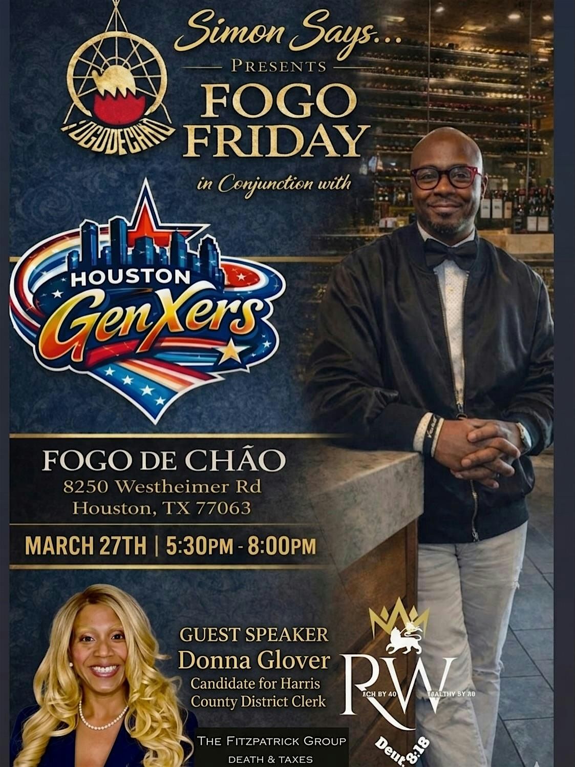 Get ready to spice up your Friday nights with Fogo Friday! Join us in person for a fun-filled evening packed with great vibes, tasty eats, and awesome company. Whether you're looking to chill with friends or meet new people, this is the place to be. Don’t miss out on the best way to kick off your weekend — it’s all about good food, good music, and good times. See you there!