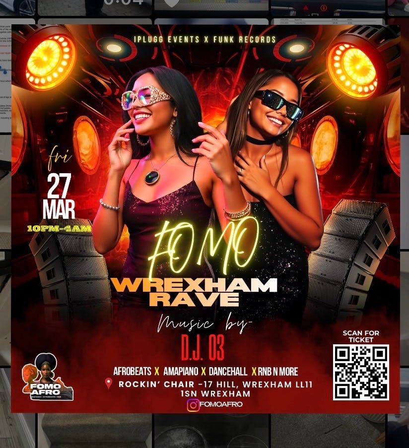 ๐ FOMO-Afro Wrexham Rave โ RELOADED ๐ฅMore Vibes. More Energy. More Fun.Wrexham weโre back and better than ever, welcome to the Reload! This isnโt just a partyโฆ itโs a full-blown Afrobeat, Amapiano, RnB experience. Expect the same fire energy, but this time, weโre turning the heat all the way up till day break๐ฅ