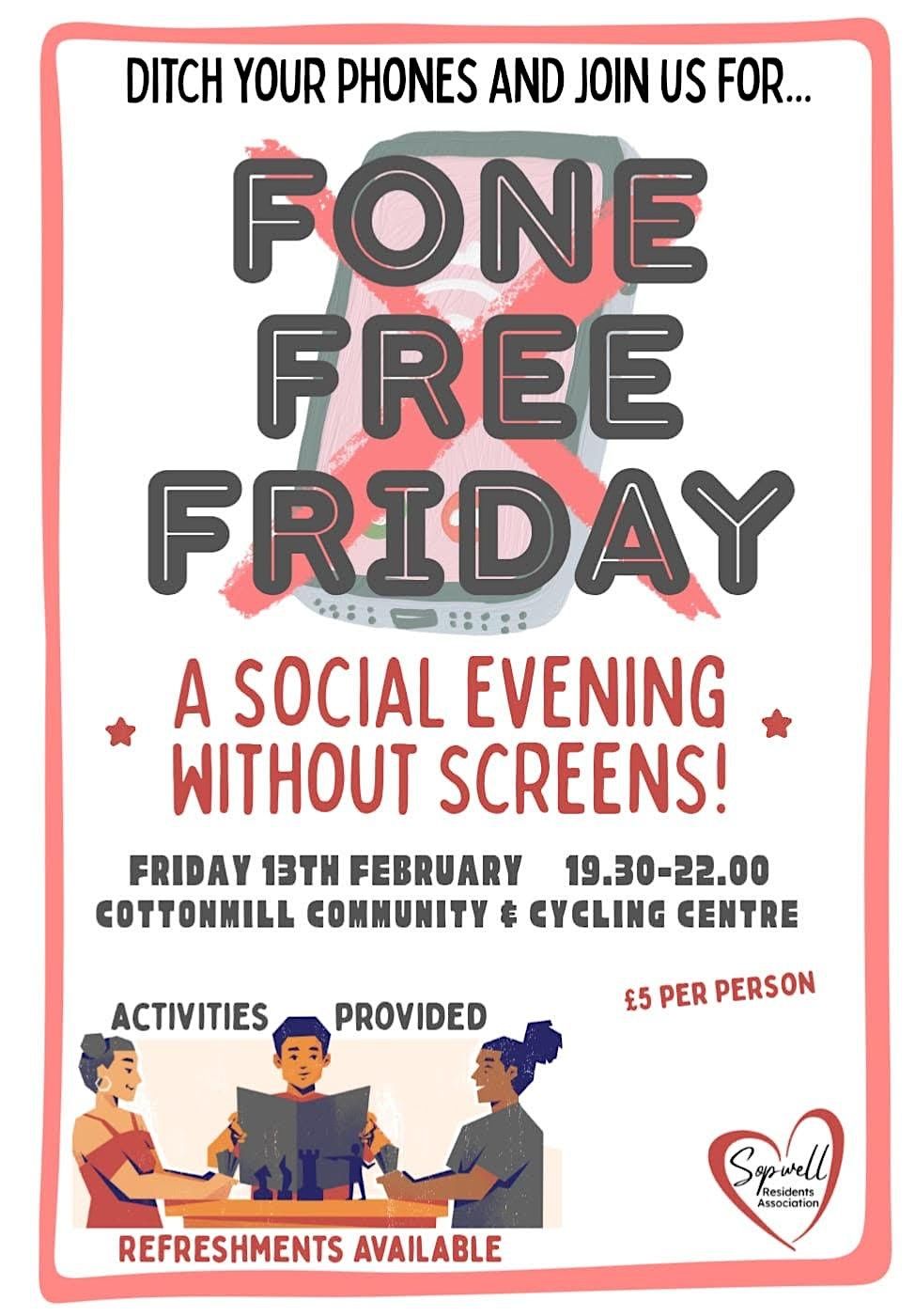 Get ready to unplug and unwind at Fone Free Friday! Join us in person for a chill evening where your phone takes a backseat and real connections take the spotlight. Enjoy good vibes, great company, and plenty of laughs without any distractions. It’s all about living in the moment and having fun – no screens required. Don’t miss out on this awesome chance to breathe, connect, and just be you!