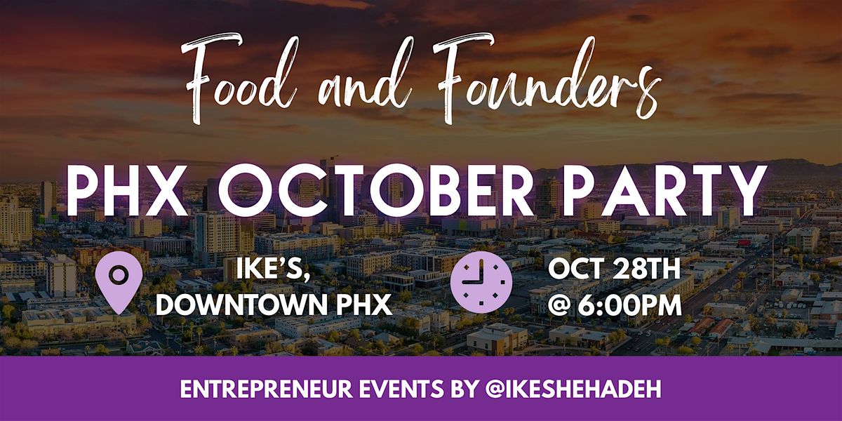 The Food & Founders October Party is happening Tuesday, October 28th at Ike’s in Downtown Phoenix!