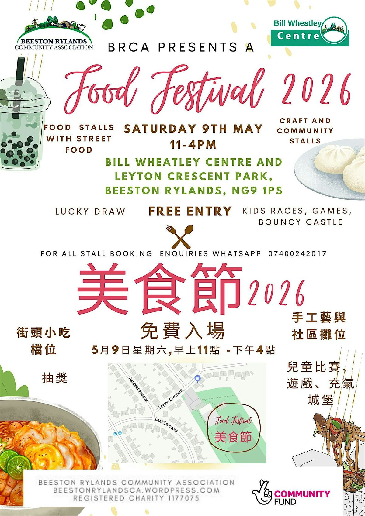 The Beeston Rylands Community Association (BRCA) is proud to present our 2026 Food Festival. This year is bigger and better than ever, featuring 30 unique stalls showcasing a world of flavors, with a special focus on the incredible culinary talents of our local Hong Kong community.