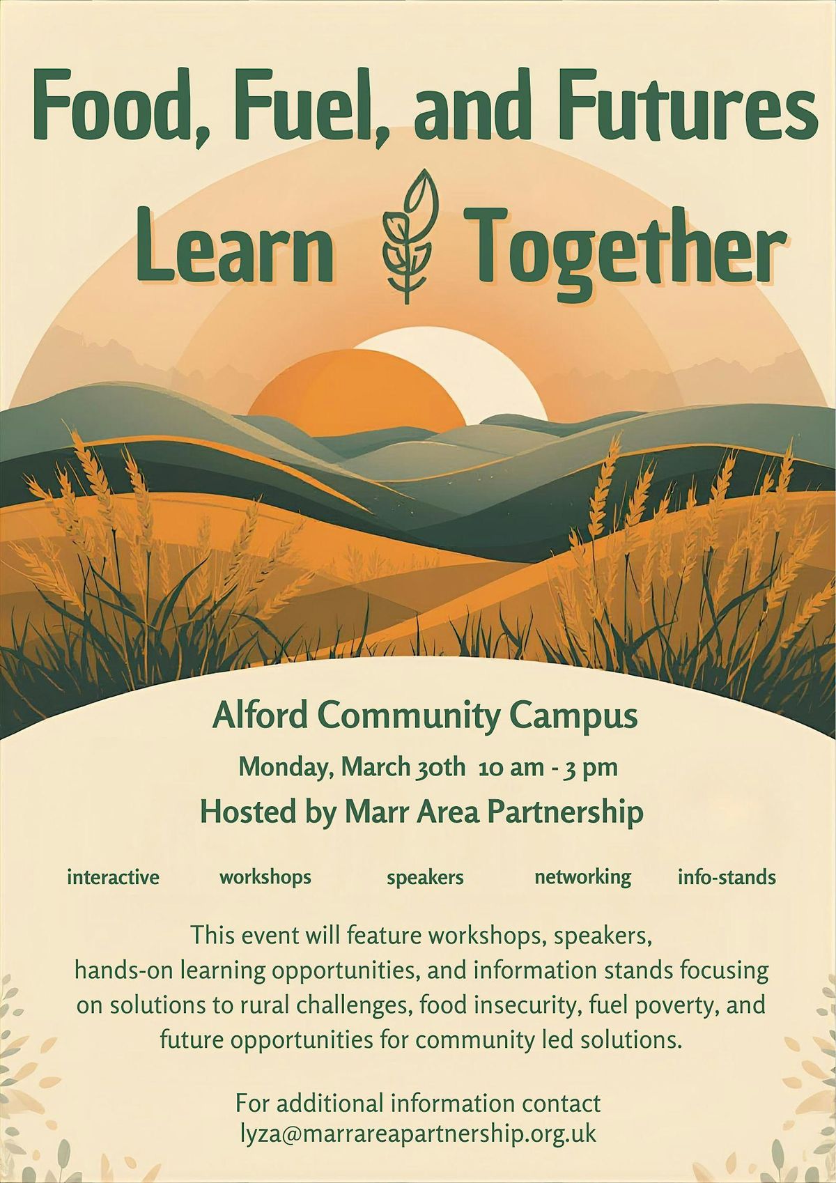 Join the conversation at Food, Fuel, and Futures. The topics for the day will focus on food insecurity, fuel poverty, and community led solutions for the future. These issues impact us all, so all are welcome to attend. Some workshops may benefit from an active role related to the topic while others may be best suited for members of the public.