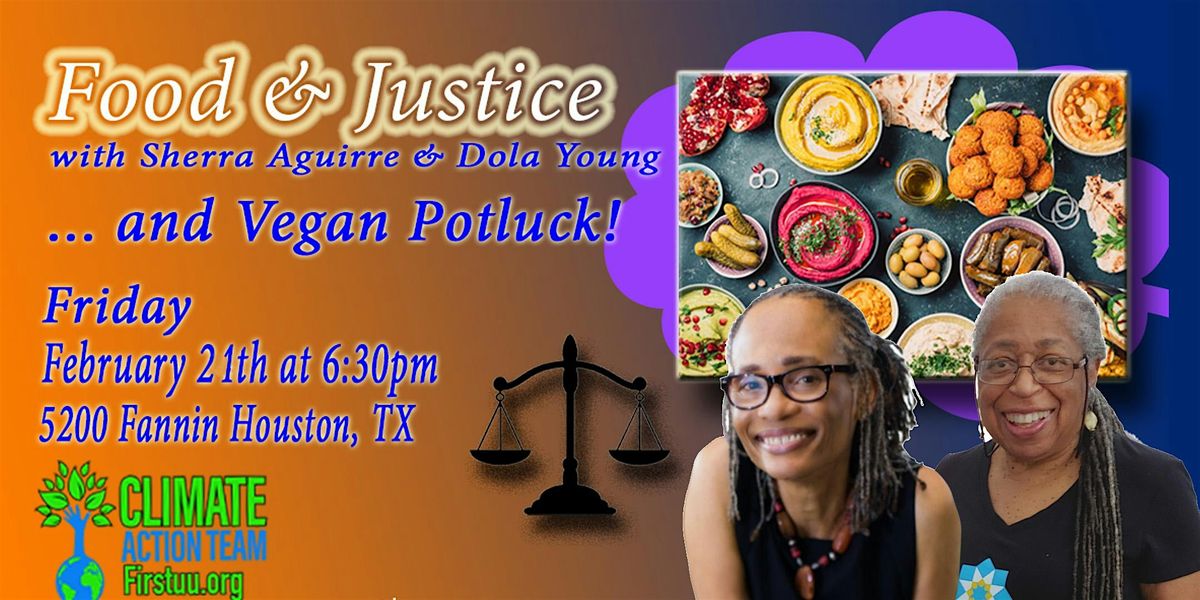 Join us for our February plant-based potluck and an introduction to Food & Justice with Sherra Aguirre and Dola Young.