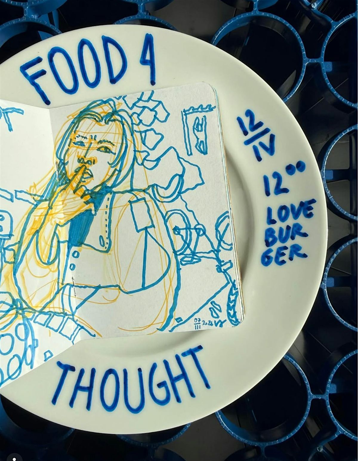 For a limited time, Vasylysa Shchogoleva’s drawings — plus a custom painting created for the space — take over the walls of LoveBurger.