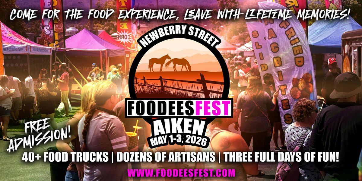 Get ready for a weekend of delicious food, unique crafts, and family fun on Newberry Street, in Aiken, SC, May 1-3, 2026! With over 40 food trucks and vendors serving gourmet dishes and sweet treats, and dozens of artisans showcasing handmade jewelry, art, and crafts, there's something for everyone! Enjoy a vibrant community atmosphere with activities for all ages!
