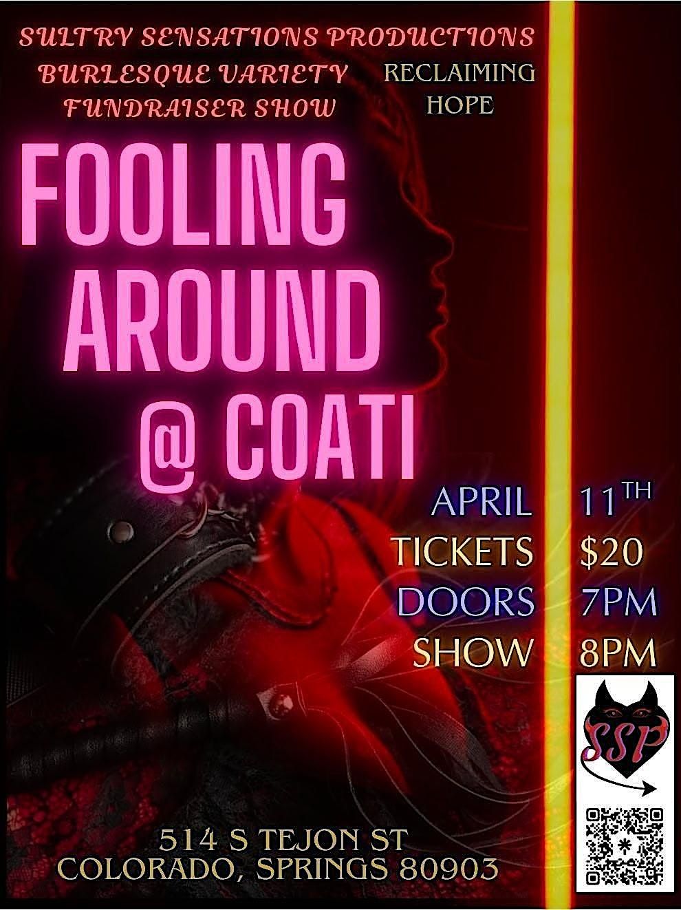 Come Fool Around with Sultry Sensations Productions Debut at COATI in downtown Colorado Springs for a night of flirty fun, bold glamour, and a whole lotta sparkle!