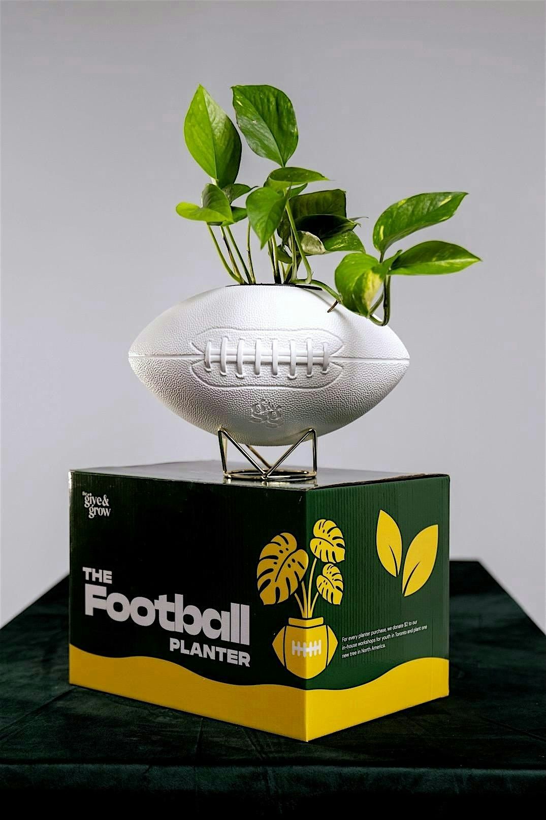 - white football planter