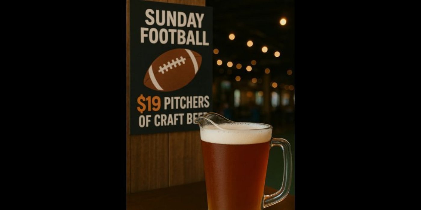 Every Sunday during football season we’re pouring $19 pitchers of select craft beers while the games play on.
