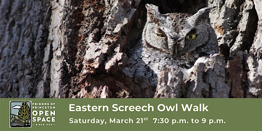 Join the Friends of Princeton Open Space (FOPOS) and South Jersey Wildlife Tours for a guided Eastern Screech Owl Walk at dusk on Saturday, March 21st at 7:30pm.