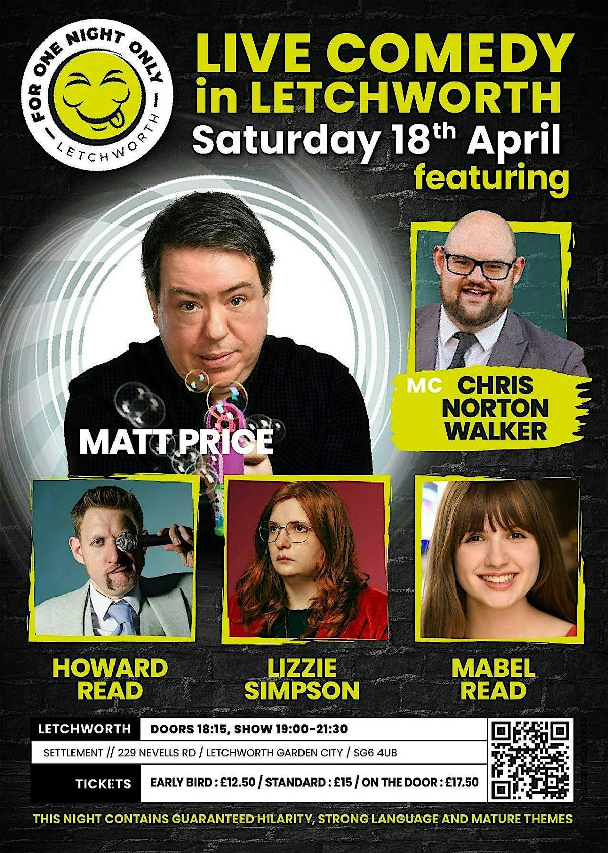 Join us at The Settlement, Letchworth for a brand new series of monthly stand-up comedy nights, bringing top circuit acts and rising stars right to your doorstep.