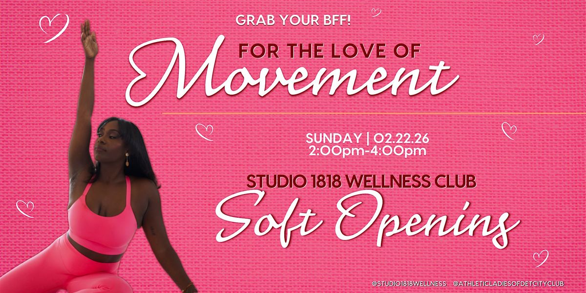 Grab your bestie and meet us at the FOR THE LOVE OF MOVEMENT | STUDIO 1818 WELLNESS CLUB SOFT OPENING event! Join us at 28759 Hoover Rd on February 22, 2026 at 2:00 PM-4:00 PM est.