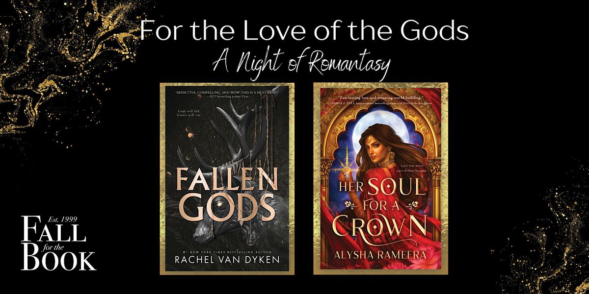 Romantasy fans unite for an evening of divine mythological mischief featuring Rachel Van Dyken, author of the Norse-inspired Fallen Gods, and Alysha Rameera, author of the Sri Lankan-inspired Her Soul for a Crown. The Fallen Gods are locked in human bodies, scattered across the world. When the daughter of the most ruthless of them attends an ancient and secretive university to steal back Mjolnir in order to save everyone she loves, she doesn’t count on the enemy’s heir getting in her way. Her Soul for a Crown is a slow-burn tale of a woman with an affinity for poisons who makes a dangerous deal with a cursed god in order to secure her revenge. Moderated by award-winning audiobook narrator, Kit Swann.