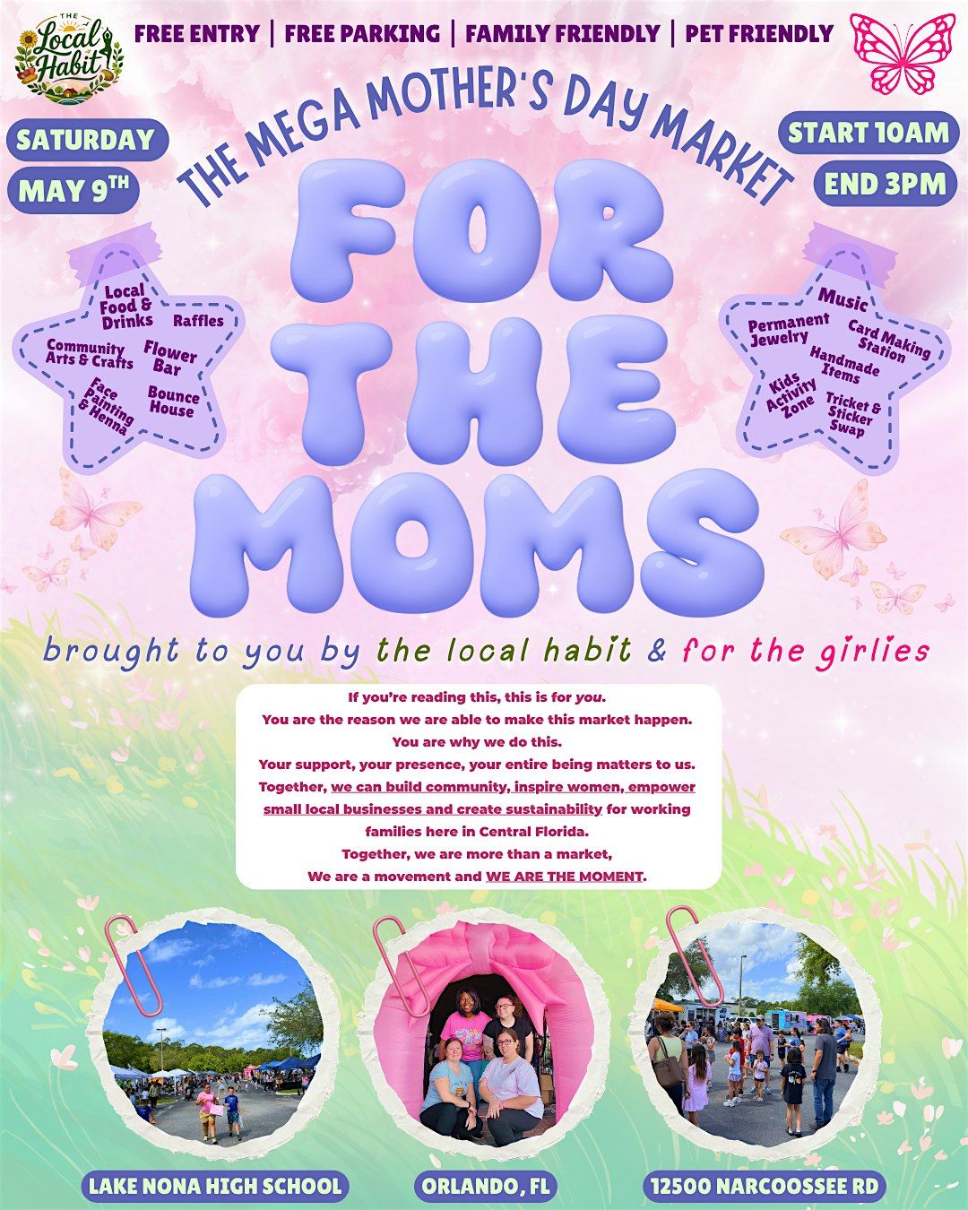 Join us for a day full of love, community joy, handmade shopping, music, food trucks, fresh drinks & a celebration of mothers & women in 📍Central Florida 🫂✨