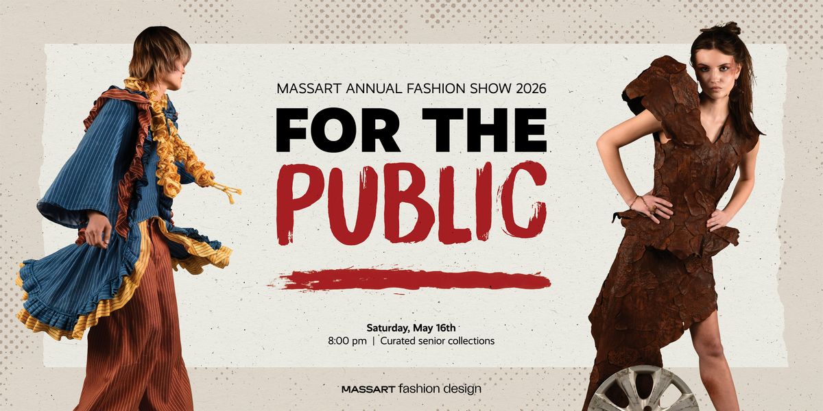 Welcome to the For the Public MassArt Fashion Show 2026 on Sat, May 16, 2026 at 8:00 PM.