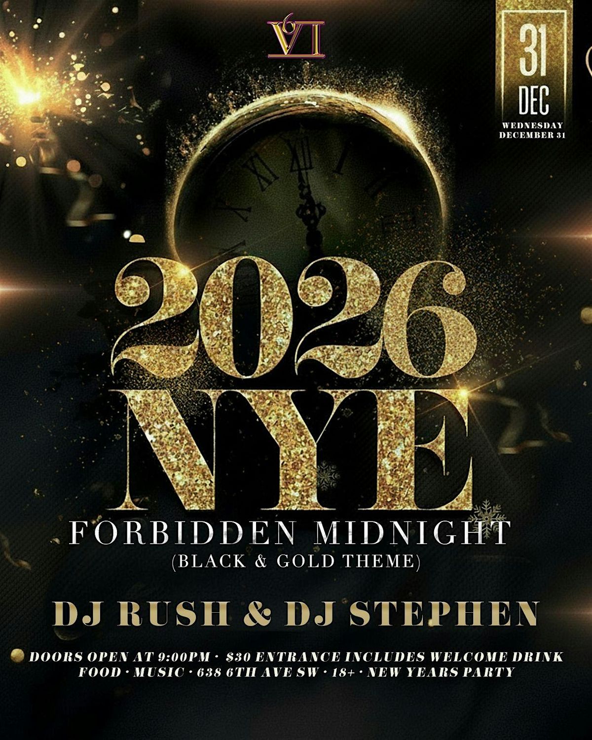 Step into the final night of the year at The 6 Lounge for an elevated Black & Gold New Year’s Eve experience, designed for those who appreciate luxury, music, and atmosphere.