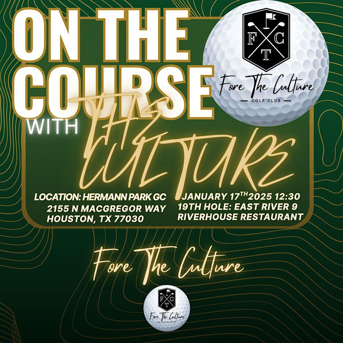 Come join us for a day of golfing fun at Hermann Park Golf Course! Our event, "On the Course with 'The Culture'," promises a fantastic time filled with laughter, friendly competition, and good vibes. Whether you're a seasoned golfer or just starting out, this event is perfect for golf enthusiasts of all levels. So grab your clubs, bring your A-game, and let's hit the greens together! See you there!