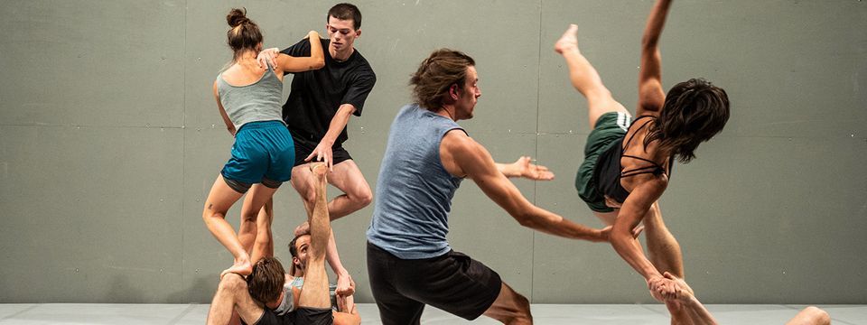 Circassien, performeur et chorégraphe, Alexander Vantournhout développe une recherche sur les limites imposées par la relation d’objet et les normes de la représentation. Sa dernière création en marque une nouvelle avancée en éprouvant les rapports entre gravité, mouvement et espace au cœur d’une dramaturgie inédite. Foreshadow repose en effet sur le principe d’une double contrainte imposée par l’avancement du mur du fond à mi-scène : la réduction de moitié de l’espace de représentation d’une part, devenant trop exigu pour le groupe de huit interprètes, de l’autre, une chorégraphie pensée à la verticale, là où ses précédentes pièces privilégiaient le travail au sol. Au rythme d’une musique rock expérimentale, les huit danseur·euses et acrobates se confrontent aux limites de cette surface ordinairement discrète qui s’impose ici physiquement, dans toute sa hauteur. Obstacle infranchissable ou dispositif expérimental, le mur commande le réagencement des déplacements, des gestes et des interactions des corps en scène, qui redoublent d’ingénierie pour en exploiter les possibles.