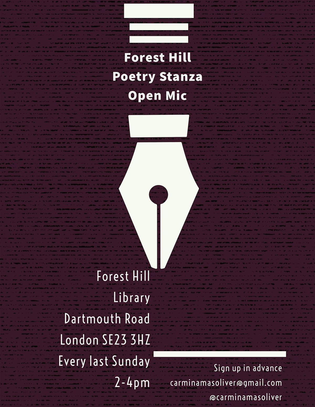 SE London's Poetry Stanza for Forest Hill will share poetry. We welcome you to step up to the mic, or simply sit back & relax.About this Event